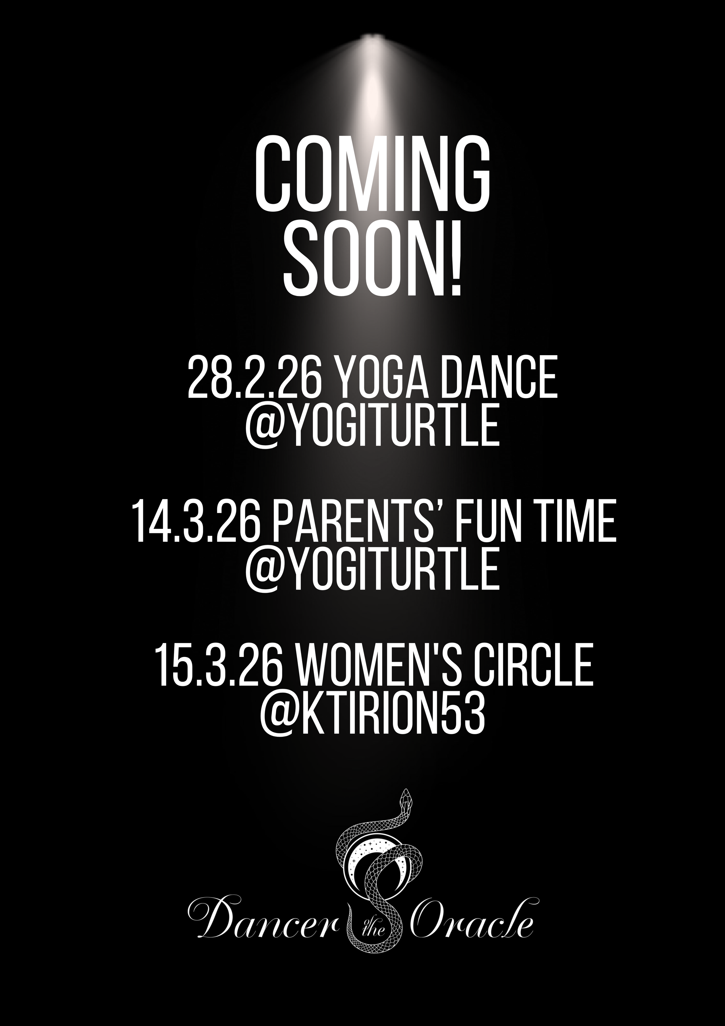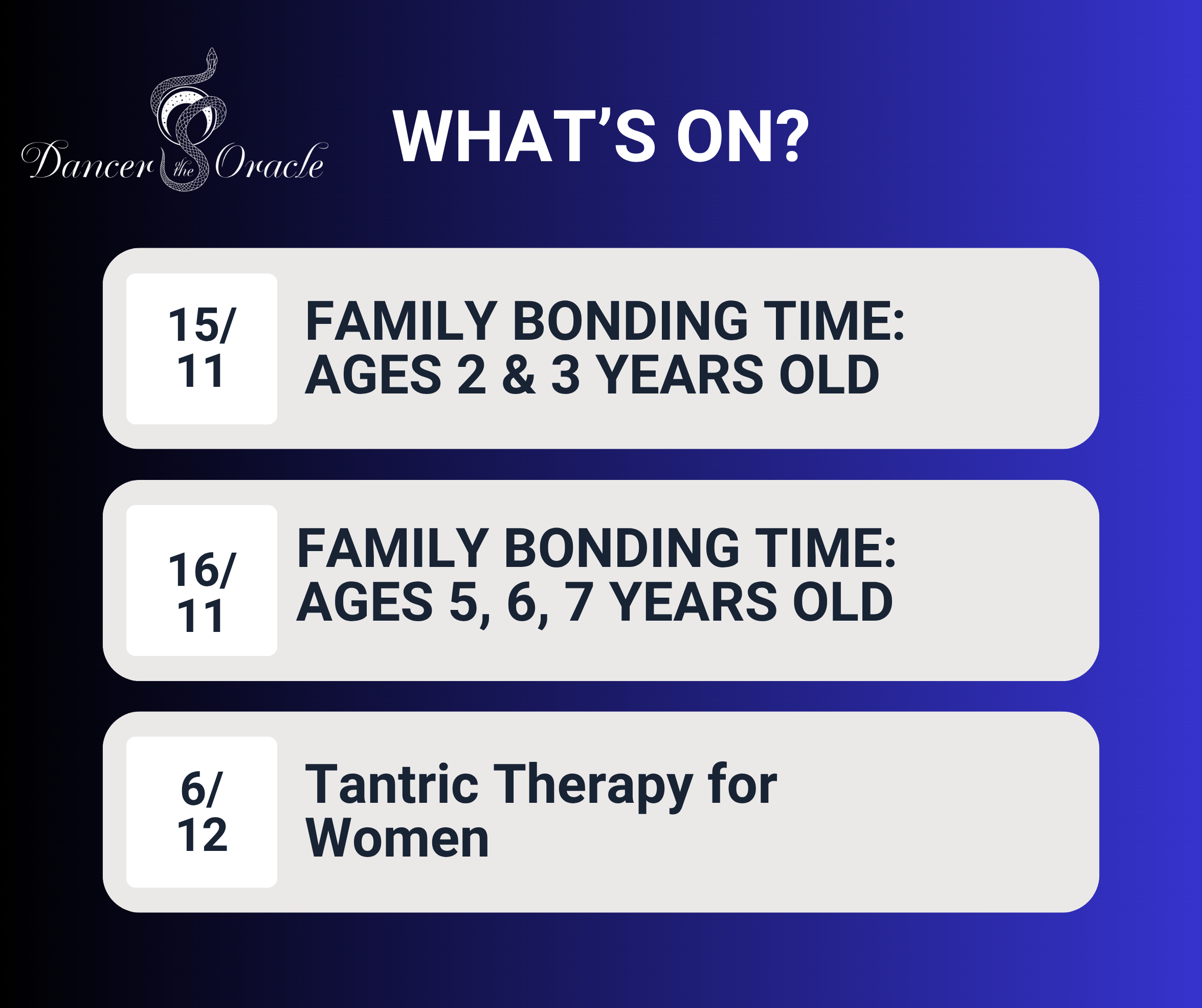 Further details are found in the Facebook page, in the events section: https://www.facebook.com/danceroftheoracleagatalessons/
